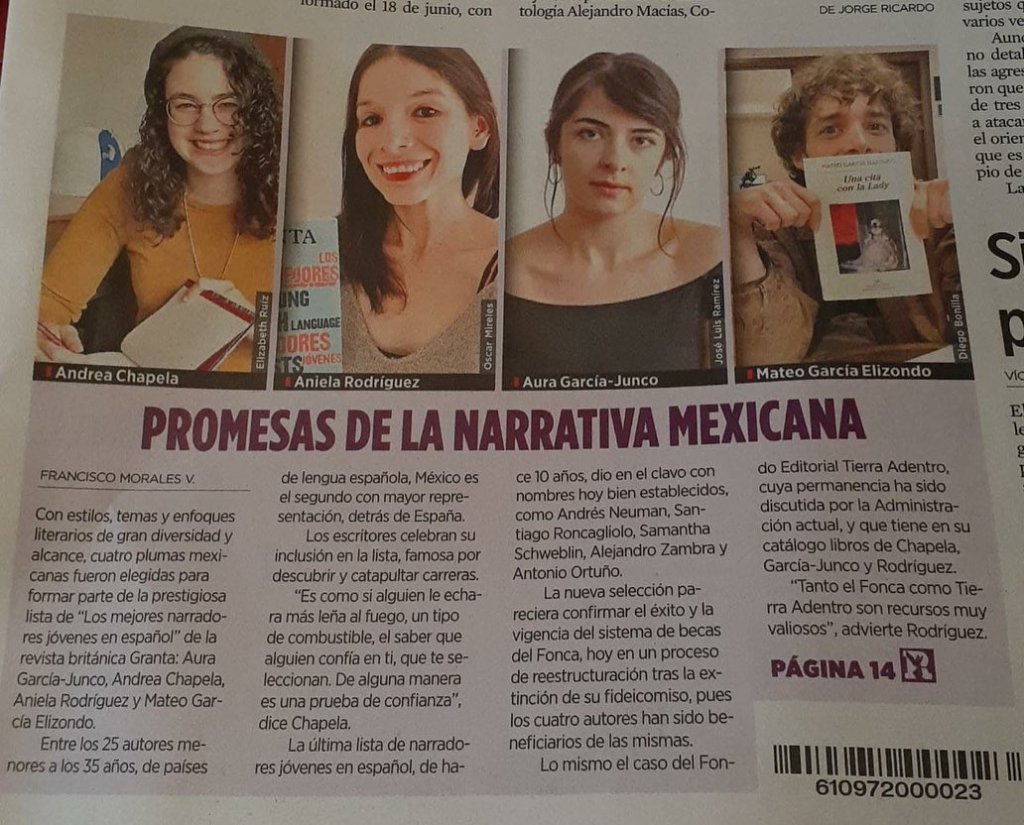 El periódico Reforma dedica un espacio a los mexicanos seleccionados por Granta, que incluye una entrevista y reseña de mi escritura. Leer.